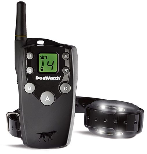 There are two basic components to a remote training system: a handheld “transmitter” and a “receiver” which is worn on a dog collar. You use the transmitter to send a signal to the receiver on the dog’s collar. Depending on the training situation, you can select one of four different signals to send to the receiver: